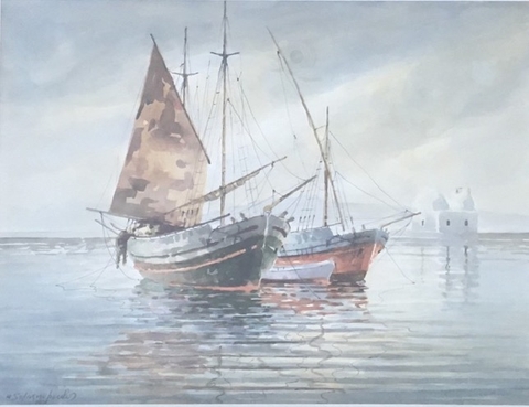 Konstantinos Sofianopoulos, Thuyền buồm trên đảo Cycladic ở biển Aegean (Sailboats on a Cycladic Island in the Aegean Sea), 1972