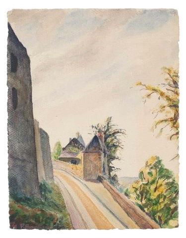 Tranh màu nước sáng tác bởi André Roland, Tranh phong cảnh (Landscape), 1960.