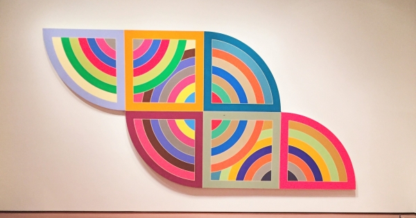 Hoạ sĩ người Mỹ, Frank Stella, là một trong những học viên nổi tiếng nhất của Op Art. Là người phát minh ra “Những tấm toan có hình” (hay những tấm toan cắt ra), các tác phẩm của ông được xác định bằng hình thức bên ngoài tương ứng với motif bên trong. Mối quan hệ giữa màu sắc và hình thức là trung tâm của cách tiếp cận nghệ thuật của ông. Hoạ sĩ, Carl Andre, tuyên bố “Frank Stella không quan tâm đến biểu cảm hay sự nhạy cảm. Anh ấy quan tâm đến những yếu tố cần thiết của hội họa ”.