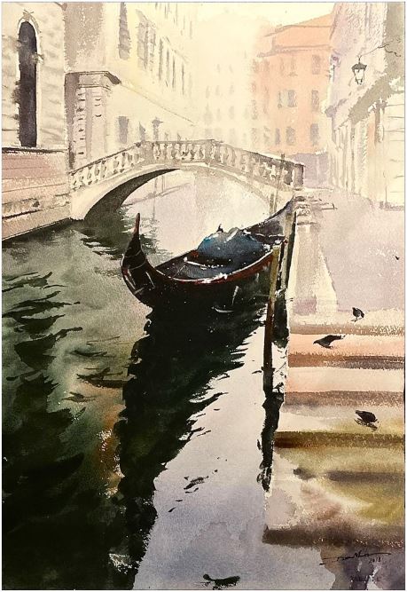Tranh màu nước "Buổi sáng ở Venice" - Hoạ sĩ Minh Đàm