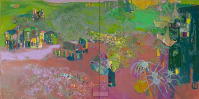 Tranh acrylic “Phố núi” - Hoạ sĩ Võ Lương Nhi