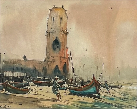 (Tranh màu nước "Nhà thờ Hải Hậu"- Họa sỹ Thụy Dương