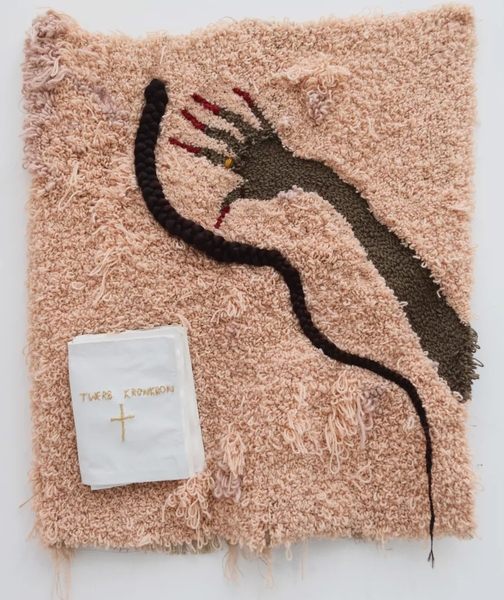 Kỹ thuật làm thảm vụn xuất hiện tại Anh vào thế kỷ 19, khi công nhân dệt may và gia đình họ tận dụng vải thừa từ các nhà máy để tái chế thành vật dụng gia đình. Paintsil bị thu hút bởi chính nguồn gốc này. “Cả hai kỹ thuật này đều xuất phát từ hoàn cảnh nghèo khó, được sử dụng để tái chế vải cũ và quần áo cũ, mang ý nghĩa thực tế và lao động—đó chính là lý do tôi chọn chúng thay vì những kỹ thuật dệt khác thường mang tính trang trí nhiều hơn,” cô chia sẻ.