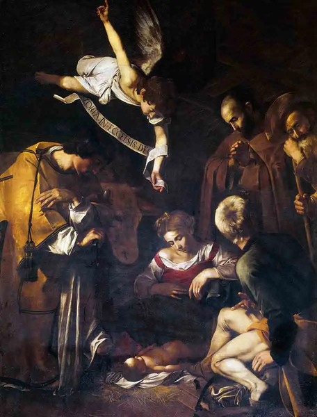 Được sáng tác vào những năm cuối đời của Caravaggio, bức tranh này mô tả cảnh Chúa Giê-su giáng sinh, với hai vị thánh Francis và Lawrence đứng bên cạnh.