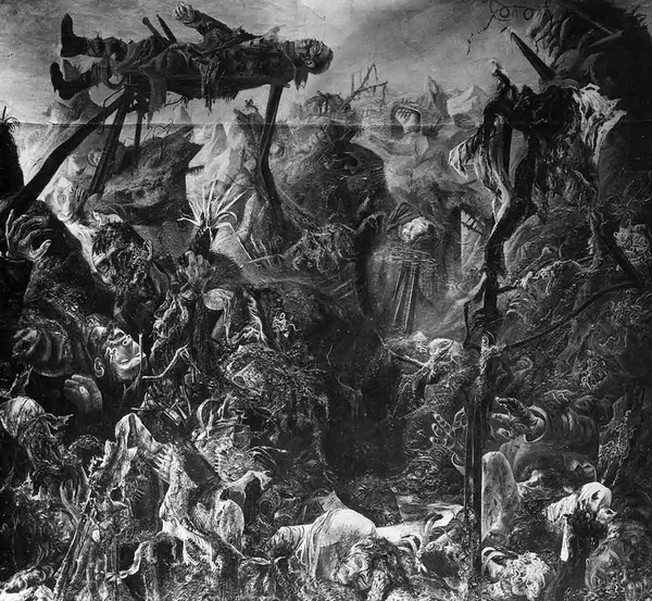 Tháng 5 năm 1945, khi quân Đức rút lui, chúng đã đốt cháy toàn bộ lâu đài, và không một dấu vết nào của các bức tranh được tìm thấy. Chỉ còn một số bức ảnh đen trắng lưu giữ lại hình ảnh của tác phẩm. Năm 2021, Google đã sử dụng trí tuệ nhân tạo để tô màu lại các bức ảnh này, nhưng kết quả vẫn chưa thực sự đạt được kỳ vọng.