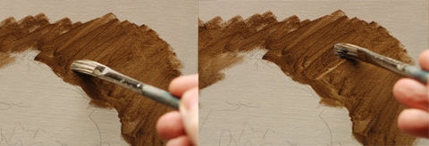 Bạn nên vẽ vùng tối nhất trong bức tranh, vẫn chỉ sử dụng màu nâu thô. Một số khu vực này thậm chí còn có thể tối hơn, và dày hơn. Không sử dụng quá nhiều dung môi, giống như vẽ khô, bạn càng "chà" thì sơn sẽ càng trôi đi.