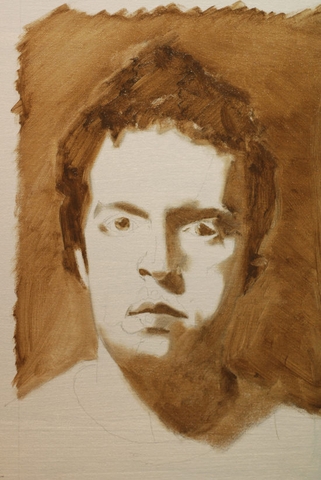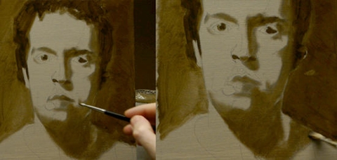 Lưu ý cách vẽ sơn dầu vào phần bên trong của bức chân dung là hãy giữ cho các cạnh mềm mại. Đây là chìa khóa khi vẽ một bức chân dung bằng phương pháp này. Các cạnh cứng và sắc rất khó che phủ, vì vậy hãy cố gắng giữ cho các cạnh mềm mại trong những giai đoạn đầu này.