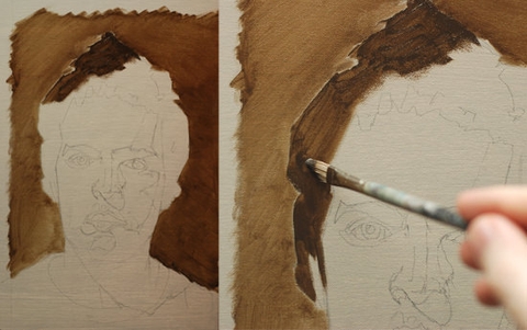 Bạn bắt đầu vẽ chân dung bằng việc tạo nền tranh. Hỗn hợp sơn phải mỏng nhưng không trong suốt. Các họa sĩ thường nhúng cọ vẽ của mình vào dung môi với số lượng rất nhỏ. Sau đó, bóp đầu cọ vẽ để cọ ẩm nhưng không ướt. Bạn nên vẽ nền tranh bằng chuyển động chà, dùng cọ nhỏ hơn cho các chi tiết, đổi sang cọ lớn hơn cho các khu vực rộng hơn.