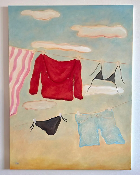 - Khi tôi bị cuốn vào một đợt sa thải ở công ty tôi từng làm việc, tôi muốn sử dụng nghệ thuật để nhắc nhở bản thân rằng có nhiều thứ ý nghĩa trong cuộc sống ngoài công việc. Đối với tôi, đó là trở về với những mùa hè tuổi trẻ đầy hoài niệm. Khi tôi nghĩ về mùa hè, đó là những bộ quần áo tôi mặc đi mặc lại và mùi của quần áo mới được giặt xong. Đơn giản và lý tưởng — đó là điều tôi muốn bức tranh này thể hiện.