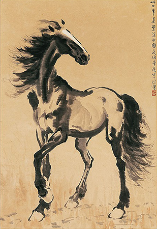 Từ Bi Hồng, “Ngựa.” Mực trên giấy, gắn trên lụa.