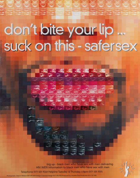 Từ cuối những năm 1980 và xuyên suốt thập niên 1990 – một thời kỳ khủng hoảng đối với cộng đồng LGBTQIA+ tại Anh – các chiến dịch truyền thông cộng đồng bắt đầu xuất hiện, nhằm thúc đẩy thực hành tình dục an toàn và khẳng định bản sắc. Những áp phích mang thông điệp mạnh mẽ như “Condoms – the necessary accessory”, “Fuck safely, love safely”, hay “Don’t bite your lip… suck on this” không chỉ thu hút bằng thiết kế táo bạo mà còn đóng vai trò quan trọng trong giáo dục cộng đồng về HIV/AIDS và sức khỏe tình dục.