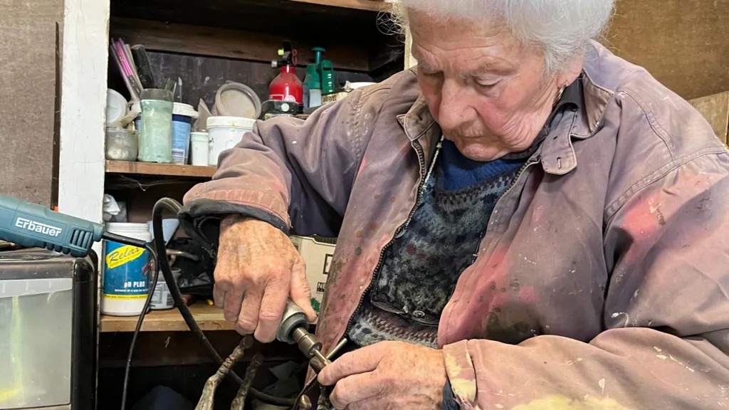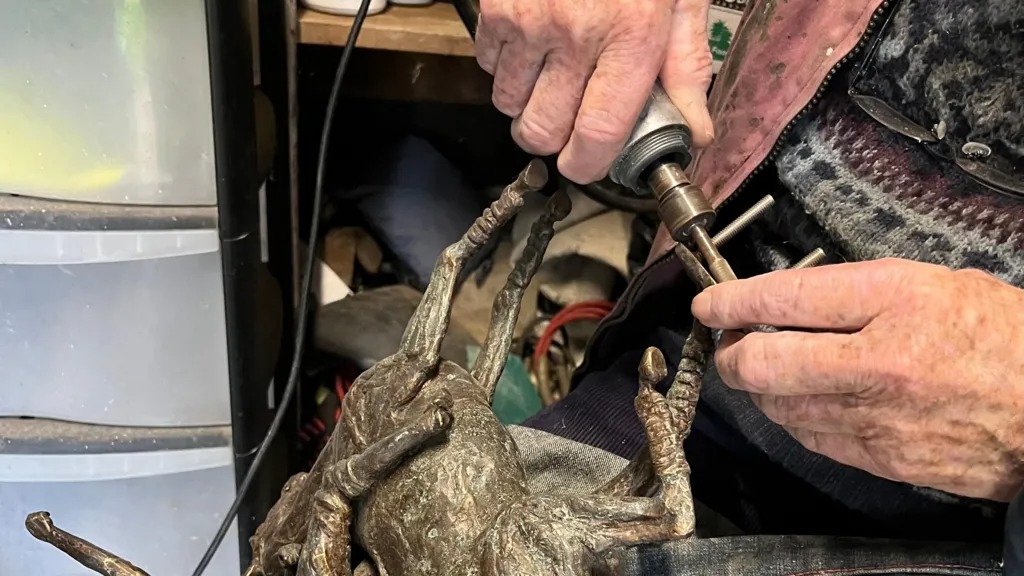 Jan Sweeney đang hoàn thiện những tác phẩm điêu khắc của mình