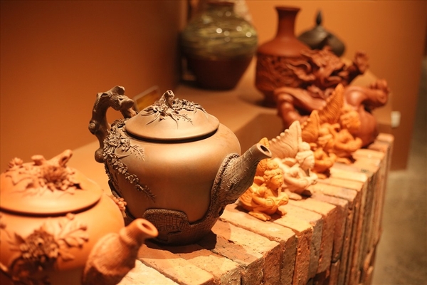 Các tác phẩm mô phỏng công đoạn làm gốm.