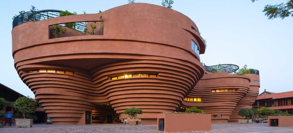 Lấy cảm hứng từ hình ảnh chiếc bàn xoay thủ công, bảo tàng được thiết kế như bảy bàn xoay gốm khổng lồ, tạo nên những đường cong mềm mại, uyển chuyển, tựa như những nét vẽ tinh tế trên nền đất sét dưới bàn tay tài hoa của nghệ nhân. Từng vòng xoay mượt mà không chỉ tái hiện quá trình kỳ công để "đất nở hoa" mà còn gợi mở về sự chuyển động không ngừng, phản ánh sức sống bền bỉ và khả năng thích nghi của nghề gốm qua bao thăng trầm lịch sử.