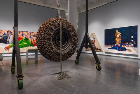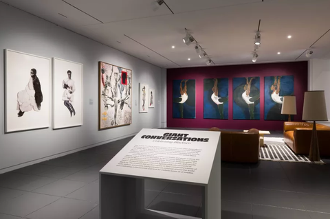 Triển lãm "Người khổng lồ: Nghệ thuật từ Bộ sưu tập Dean của Swizz Beatz và Alicia Keys" tại Bảo tàng Brooklyn được thiết kế để gợi nhớ những giai điệu ngọt ngào của Marvin Gaye. Do Kimberli Gant chịu trách nhiệm, triển lãm trưng bày hơn 100 tác phẩm của các nghệ sĩ da màu nổi bật và đã thành danh, từ bộ sưu tập nghệ thuật ấn tượng của hai ngôi sao âm nhạc Kasseem "Swizz Beatz" Dean và Alicia Keys. Khi bước vào phòng trưng bày đầu tiên, khách tham quan được khuyến khích là "trở thành những người khổng lồ nhất của chính mình: nghĩ những suy nghĩ lớn nhất, thể hiện bản thân một cách lớn lao nhất có thể." Mặc dù lời khuyên này có thể lung linh giữa sự hỗn loạn toàn cầu, không ai nghi ngờ được rằng Dean và Keys, hai nhà soạn nhạc và nhà sưu tập tài năng, đã áp dụng triết lý này để thúc đẩy sự nghiệp cũng như vai trò sưu tầm của họ. "Người khổng lồ," mở cửa từ ngày 10 tháng 2, đánh dấu lần đầu tiên bộ sưu tập đồ sộ của cặp đôi được trưng bày tại một không gian như thế này. Đặt trong Đại sảnh của Bảo tàng Brooklyn, triển lãm có sự góp mặt của các nghệ sĩ sáng tạo như Derrick Adams, Mickalene Thomas và Arthur Jafa; tác phẩm khổng lồ "Big Wheel I" (2018) của Jafa cảm thấy nặng nề, giống như sự bất chắc của cuộc bầu cử Mỹ trong năm nay. Những tác phẩm ít được biết đến này bổ sung cho các tác phẩm quen thuộc, thể hiện sự rộng lớn và sâu sắc của bộ sưu tập của Dean, bao trùm nhiều thập kỷ và quốc gia, phong phú về các khía cạnh đáng giá của cuộc sống của người da màu.