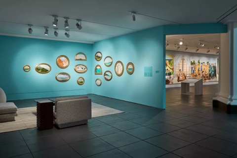Tại một số phòng triển lãm, những âm thanh mềm mại từ loa bố trí trong không gian thu hút sự chú ý của du khách. Phòng được trang bị những chiếc ghế dài sang trọng màu nâu, bàn cà phê hình góc phần tư và chiếc thảm giả gỗ. Thay vì chiếc TV 60 inch, trên tường có 14 khung hình tròn màu vàng được trang trí tinh xảo, làm điểm nhấn cho bức tường xanh da trời. Trong mỗi khung hình là phong cảnh Jamaica, mang người xem đến với vẻ đẹp của hòn đảo. Đó như là một giấc mơ trong thực tế. Những hình ảnh ảo được sáng tạo bởi Barkley L. Hendricks - nổi tiếng với những bức chân dung- người đã yêu thích những cảnh thiên nhiên của hòn đảo khi ông bắt đầu thăm vào những năm 1980. Giấc mơ của Dean đã thành hiện thực: một phòng khách nơi khách tham quan có thể ngồi như ở nhà mình và chiêm ngưỡng những tác phẩm nghệ thuật tuyệt đẹp trên bức tường.
