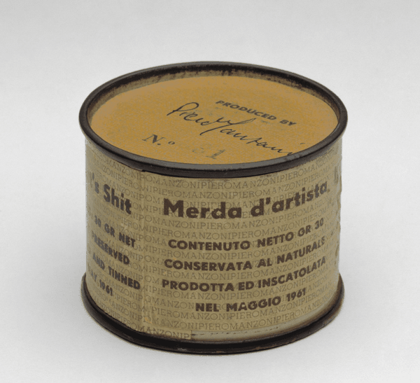 Piero Manzoni, Artist’s Shit, no. 31, 1961. Metal, paper – 5 × 6.5 cm. Courtesy Art Resource, New York.