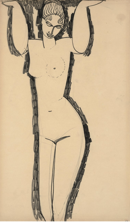 Amedeo Modigliani (1884-1920), Cariatide, 1910-1911. Charcoal on paper,