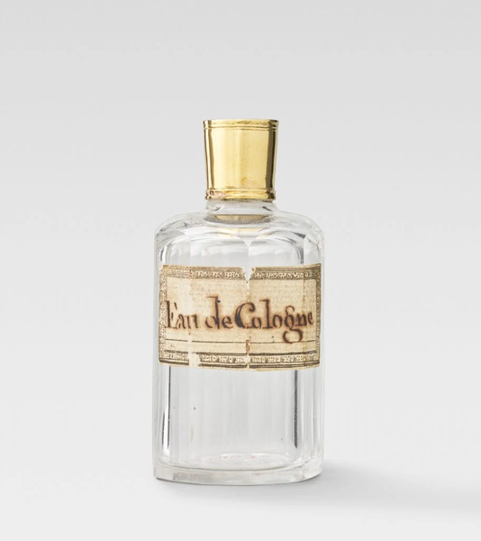 Lọ pha lê có nhãn “Eau de Cologne” từ bộ “Nécessaire de voyage” của Marie Antoinette. (Hình ảnh: © Grand Palais RMN (musée du Louvre) / Michel Urtado).