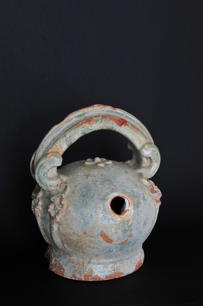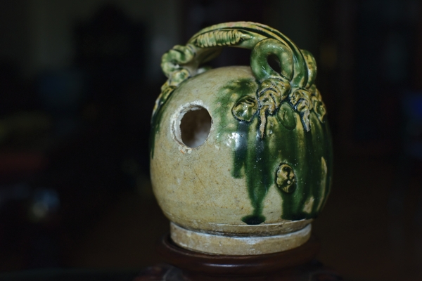 Bình vôi với màu men lục đặc trưng của thời Lê thể hiện trên trang trí quai bình.