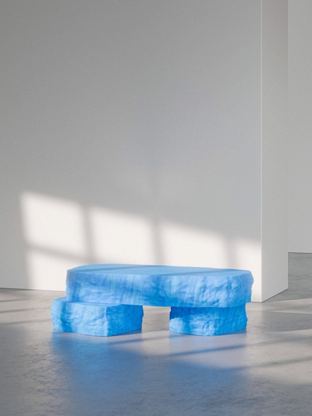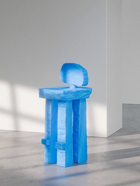 Bộ sưu tập gồm bàn, ghế đôn, ghế tựa và gương – tất cả được tạo hình như những phiến đá lớn, kết hợp giữa hình khối bất quy tắc, bề mặt thô ráp và lớp nhuộm xanh đậm. Một số thiết kế được điểm xuyết bằng chi tiết kim loại tinh tế, như ổ khóa trên chiếc gương Portals, gợi liên tưởng đến khái niệm “ngưỡng cửa” – nơi các không gian, ký ức và cách nhìn giao nhau.