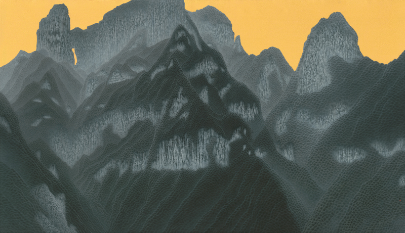 Trong tác phẩm Gentleness in the Desolate Land—Gateway to the Sky của Chen, mỗi kết cấu tinh tế đều trải qua hàng chục lớp pha trộn.