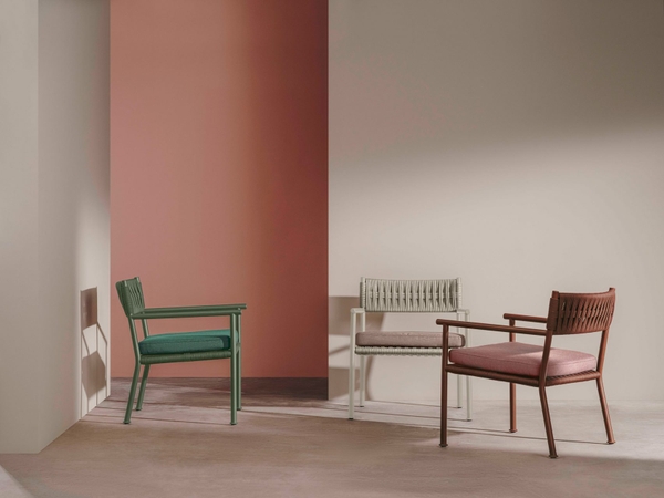 Thương hiệu nội thất quốc tế Andreu World vừa ra mắt bộ sưu tập ngoài trời Brezal, do Patricia Urquiola thiết kế, với cấu trúc khung nhôm kết hợp dây đan nhằm “tái hiện thủ công mây tre trong ngôn ngữ đương đại”.