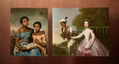 ( Side-by-side image of the painting of the two girls by Emma Jones and the portrait of Dido Belle and Lady Elizabeth Murray, both being investigated in “A Double Whodunnit” episode of the BBC’s Fake or Fortune )