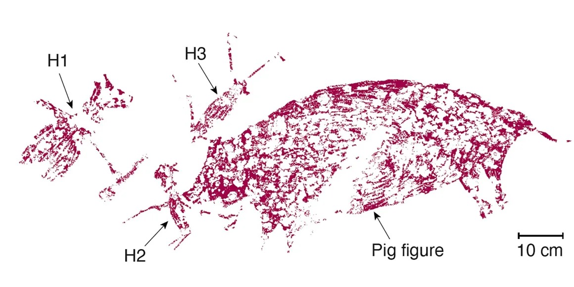 Bên trong hang đá vôi Leang Karampuang, thuộc vùng Maros Pangkep ở Nam Sulawesi (Indonesia), các nhà khảo cổ đã phát hiện ra một bức tranh hang động mô tả ba hình người đang tương tác với một con lợn rừng. Theo nghiên cứu công bố trên tạp chí Nature, bức tranh này được vẽ bằng sắc tố đỏ và có tuổi đời ít nhất 51.200 năm – trở thành ví dụ lâu đời nhất từng được biết đến về nghệ thuật kể chuyện trong lịch sử nhân loại.