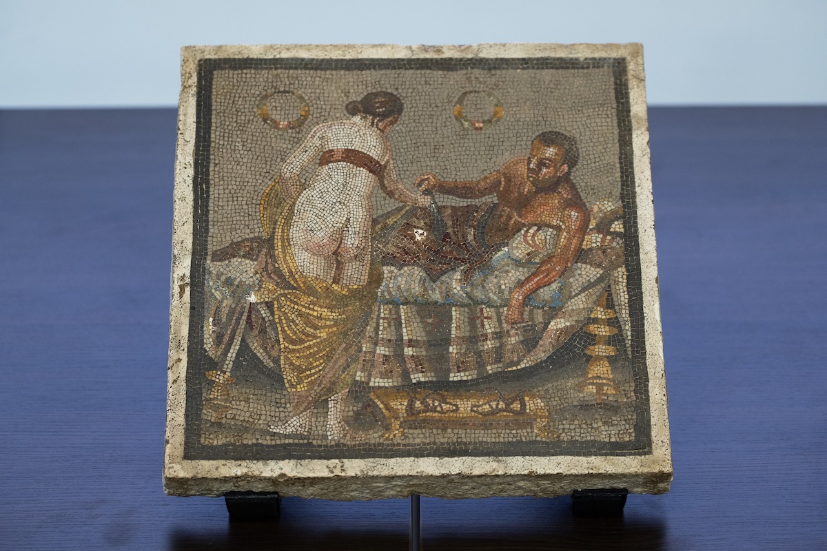 Một bức khảm cổ mô tả cảnh phòng ngủ mang yếu tố gợi tình đã chính thức trở về quê hương Italy sau nhiều thập kỷ bị lấy đi trong Thế chiến II.