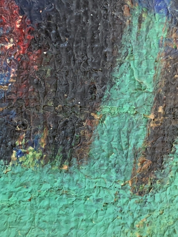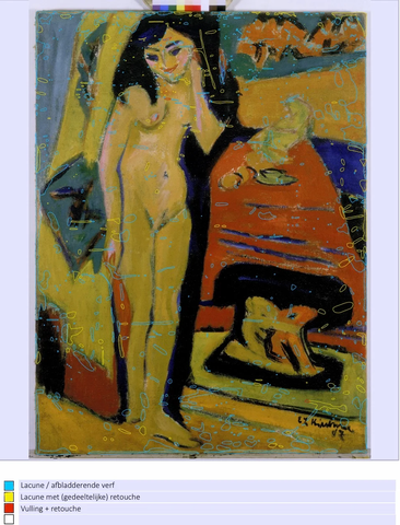 ( Blue and yellow marks indicating paint loss in Ernst Ludwig Kirchner, Naked Girl Behind Curtain (Fränzi) (1910/1926)