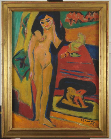 ( Ernst Ludwig Kirchner, Naked Girl Behind Curtain (Fränzi) (1910/1926)