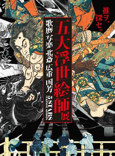 Áp phích của triển lãm nghệ thuật “Ngũ đại danh họa ukiyo-e: Utamaro, Sharaku, Hokusai, Hiroshige, Kuniyoshi”.