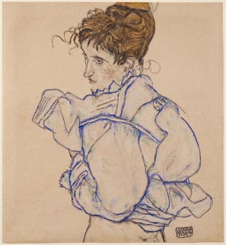Tác phẩm “Woman Disrobing (Edith Schiele)” của Egon Schiele