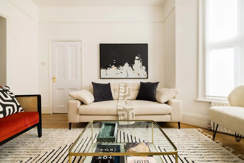 Nếu bạn có một phòng khách toàn màu trắng, hãy làm nó trở nên sống động bằng những món đồ tươi sáng, đầy màu sắc hoặc thêm phần kịch tính với những hình khối trừu tượng táo bạo.