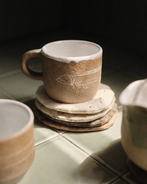 John Zabawa vẽ những bát cơm tĩnh lặng. Will Calver ghi lại hình ảnh trái cây, hạt và cây cỏ trong ánh sáng tinh khôi. Koo Bohnchang chụp lại những chiếc thìa bạc cũ – như lời thì thầm về ký ức và sự hao mòn dịu dàng của thời gian. Những tấm đệm sàn bằng lụa do Christina Kim (Dosa) thiết kế gợi nhớ tuổi thơ ở đảo Jeju, trong khi tấm bình phong phủ lá bạc của Ash Roberts mở ra không gian suy tưởng và riêng tư. Từ các bình gốm mang dáng dấp nghi lễ của Yoona Hue và Nancy Kwon, đến những lọ acrylic thanh nhã của Rahee Yoon hay màn chắn lò sưởi làm từ gỗ cháy đen theo kỹ thuật shou sugi ban của Lindsey Chan – tất cả đều gợi lên chất Á Đông tinh tế, đồng thời rất đương đại.