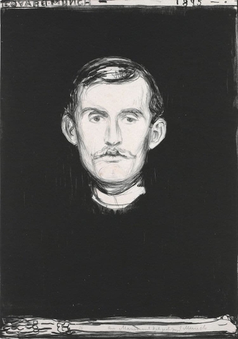 Họa sĩ kiêm thợ in người Na Uy, Edward Munch được biết đến với những bức miêu tả theo trường phái Biểu hiện u ám, ảm đạm và Self-Portrait With Skeleton Arm (1895) cũng không phải là ngoại lệ. Tác phẩm đặc biệt này ban đầu được vẽ bằng phấn và mực in thạch bản, và đã được tái bản nhiều lần kể từ khi được hình thành. Trong các bản tái tạo sau này, Munch thậm chí còn chọn bôi đen cả cánh tay và chữ ký của mình. Ngày nay, các bản in chân thực của tác phẩm này có thể được tìm thấy trong nhiều bộ sưu tập, bao gồm cả Bảo tàng Anh.