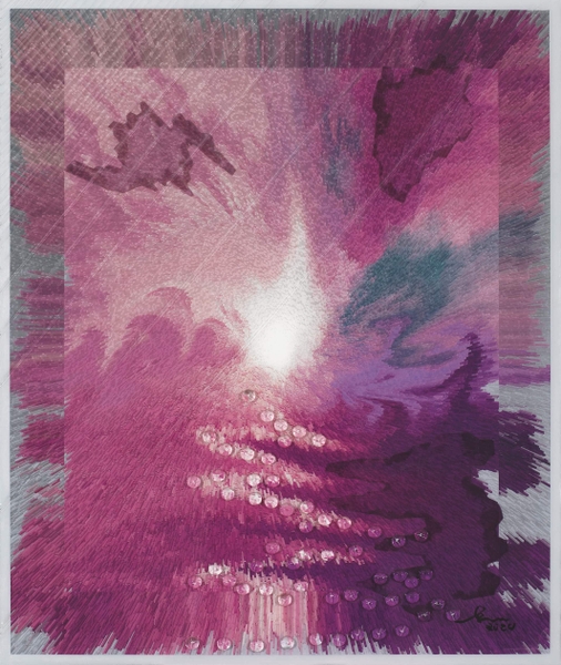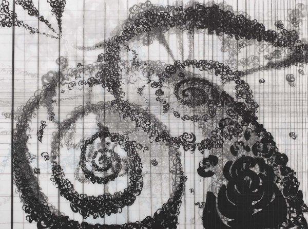 Quantum Roses 1, BAISHUI, 2024, mực trên toan, chất liệu tổng hợp, 200×150 cm.![]()