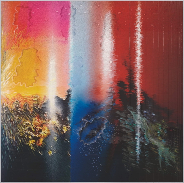 Shimmer 9, BAISHUI, 2025, acrylic trên toan, chất liệu tổng hợp, 200×200 cm.