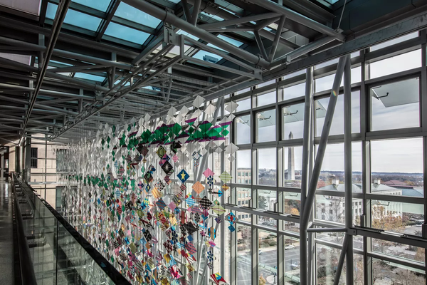 Tượng điêu khắc Kites của Jacob Hashimoto, trong tòa nhà Tổng cục Dịch vụ Hành chính (GSA) ở Washington, D.C. Ảnh: Carol M. Highsmith/Thư viện Quốc hội