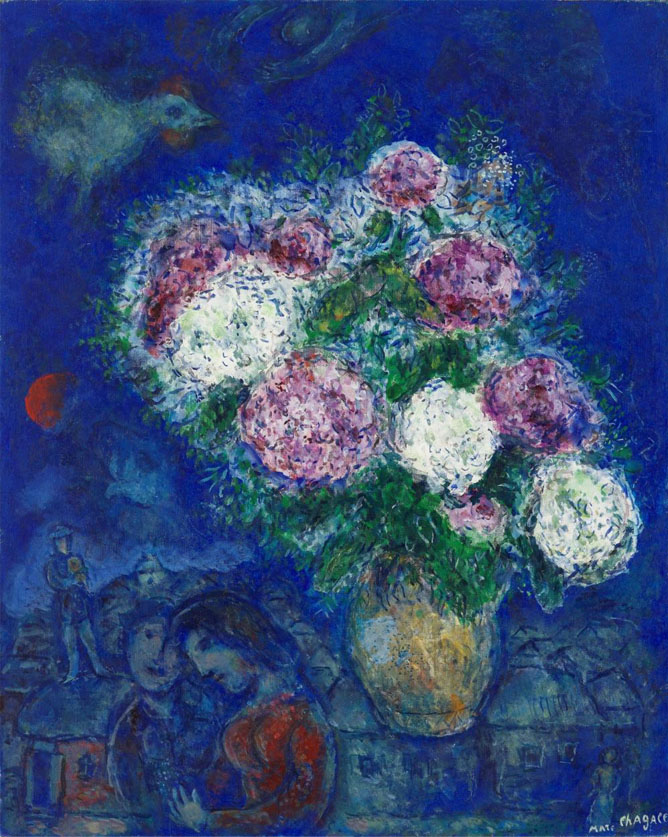 Marc Chagall – L’idylle en bleu dầu và màu keo trên toan