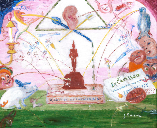 Là một trong những người tiên phong của Chủ nghĩa Biểu hiện, họa sĩ người Bỉ James Ensor nổi tiếng với các tác phẩm biếm họa kỳ dị, sử dụng lớp sơn dày và biểu tượng ẩn dụ mạnh mẽ. Là một nhà châm biếm bẩm sinh, ông thường khai thác các chủ đề như lễ hội hóa trang, mặt nạ, bộ xương và những hình ảnh ma quái để phản ánh cái nhìn sâu cay về xã hội.