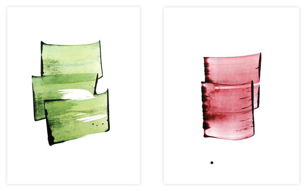 Emma Gobedska, Golden Green 08, 2021 (Left), Memento 03, 2022 (Right).