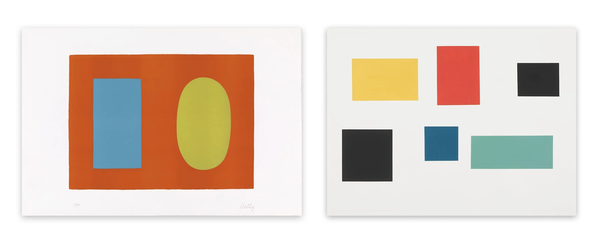 Ellsworth Kelly, Blue And Green Over Orange, 1964 (Left) - Tom McGlynn, Survey 3, 2013 (Right).