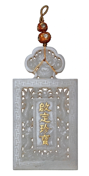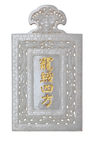 Mặt trước thẻ bài của Từ Cung Hoàng Thái hậu khắc nổi dòng chữ Hán nạm vàng “Sủng tuy tứ phương”