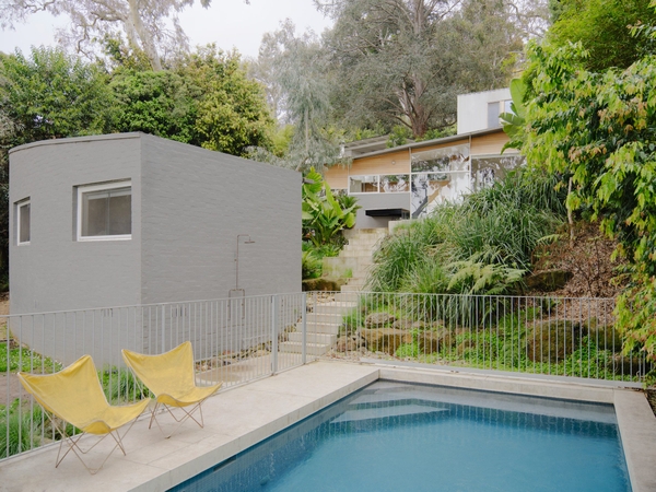 Cách bố trí này tạo nên những góc nhìn mới xuyên qua sân trong trung tâm, nơi những bậc thang dẫn xuống hồ bơi phía cuối khu vườn.