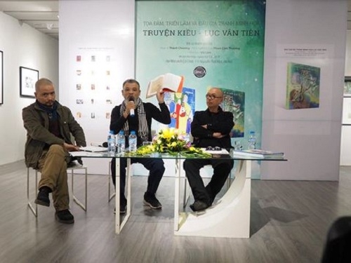 Mới đây, tại nhà sách Cá Chép, 115 Nguyễn Thái Học, Hà Nội đã diễn ra buổi tọa đàm và chương trình đấu giá tranh minh họa Truyện Kiều và truyện thơ Lục Vân Tiên. Tại đây, họa sĩ Thành Chương và nhà nghiên cứu Phan Cẩm Thượng đã có những chia sẻ xung quanh việc thực hiện minh họa cho cuốn “Truyện Kiều” (NXB Văn học liên kết cùng Công ty cổ phần văn hóa Đông A ấn hành).