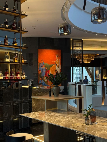 Tranh lụa, tranh sơn dầu, chất liệu hỗn hợp,... xuất hiện trong từng góc nhỏ của khách sạn, không phô trương mà lặng lẽ tạo nên không khí riêng biệt. Những tác phẩm này không chỉ đơn thuần trang trí, mà là phần mở rộng của câu chuyện công chúa Từ Hoa, kể về nữ tính, văn hóa, ký ức và bản sắc một vùng đất qua lăng kính của các nghệ sĩ đương đại.