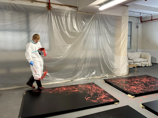 Không chỉ là ca sĩ sở hữu lượng đĩa bán chạy hàng đầu thế giới với các bản nhạc pop nhẹ nhàng về tình yêu và mất mát, Ed Sheeran nay còn lấn sân vào hội họa với triển lãm tranh đầu tay mang tên Cosmic Carpark Paintings. Đây là chuỗi tranh trừu tượng mà nam ca sĩ bắt đầu thực hiện từ năm 2019, với phong cách phóng khoáng, nhiều màu sắc được vẩy và nhỏ giọt sơn lên toan.