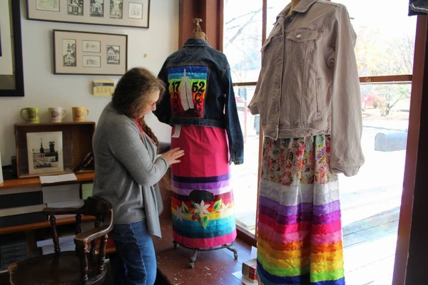 Người phụ trách Sky Suslov trưng bày những chiếc váy ruy băng tại Bảo tàng Lịch sử Ashfield.
